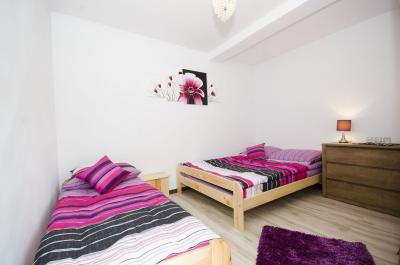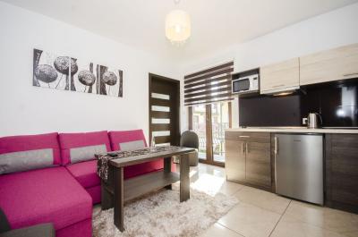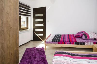 Dwupokojowy apartament (4 osobowy) z możliwością dostawki znajduje się na pierwszym piętrze budynku. Dodatkowo każdy z Gości posiada w apartamencie w pełni wyposażoną kuchnię oraz łazienkę z pełnym węzłem sanitarnym. Dla najmłodszych na terenie obiektu znajduje się duży plac zabaw wraz z trampoliną i basenem chińskim ze zjeżdżalniami i torami przeszkód.